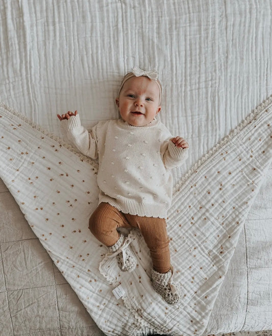 Organic Knit Sweater | Cream Pom
