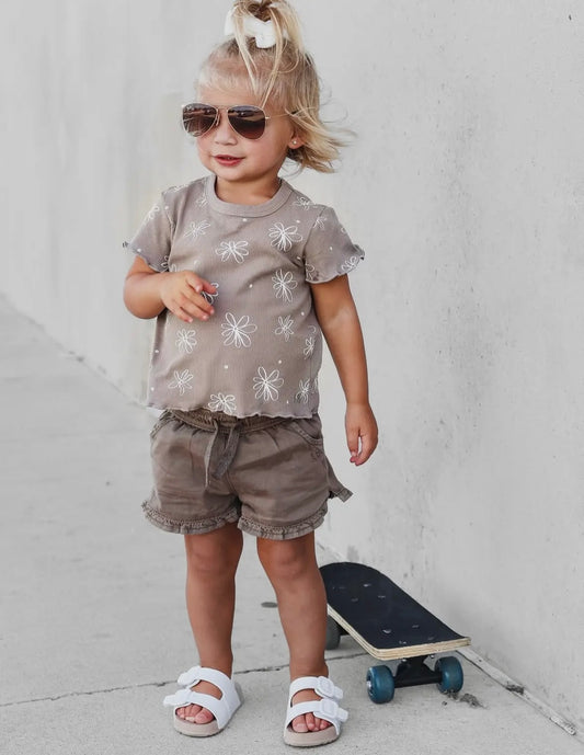 LB Floral Ribbed Lettuce Trim Tee | Mushroom
