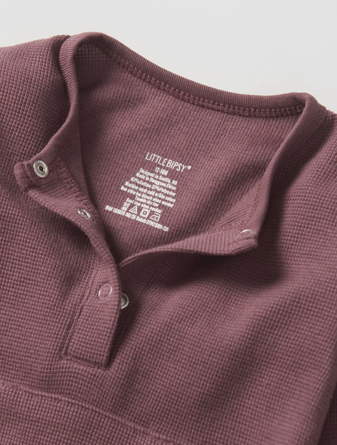 Our Waffle Romper is a cozy one-piece wonder featuring a button-front closure and made from a soft waffle-knit fabric for ultimate comfort. Perfect for easy outfit changes and all-day wear, this romper is a go-to for little ones from 0-3M to 18-24M.